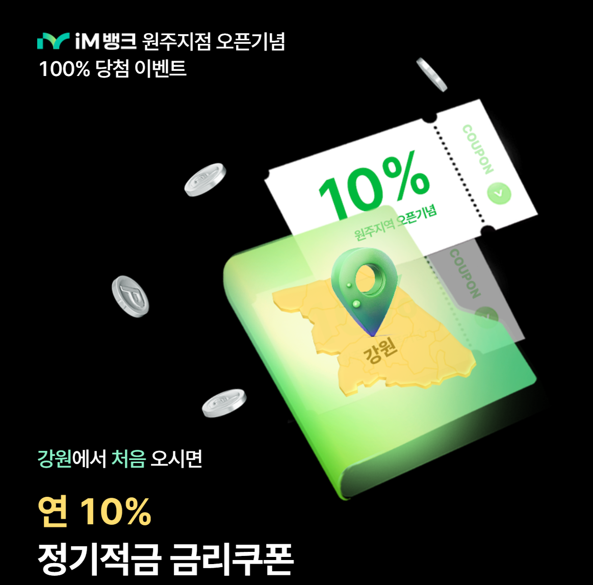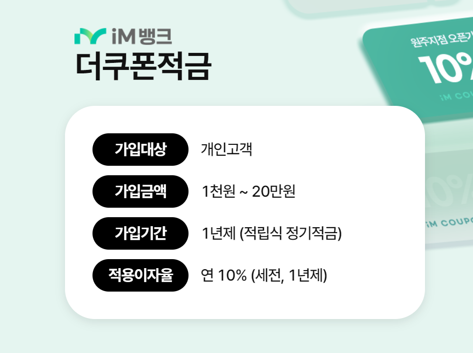 iM뱅크 원주지점 오픈기념 연 10% 쿠폰적금 비대면 가능합니다.