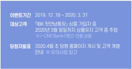 대상 고객 : IBK 첫만남통장 상품 가입자