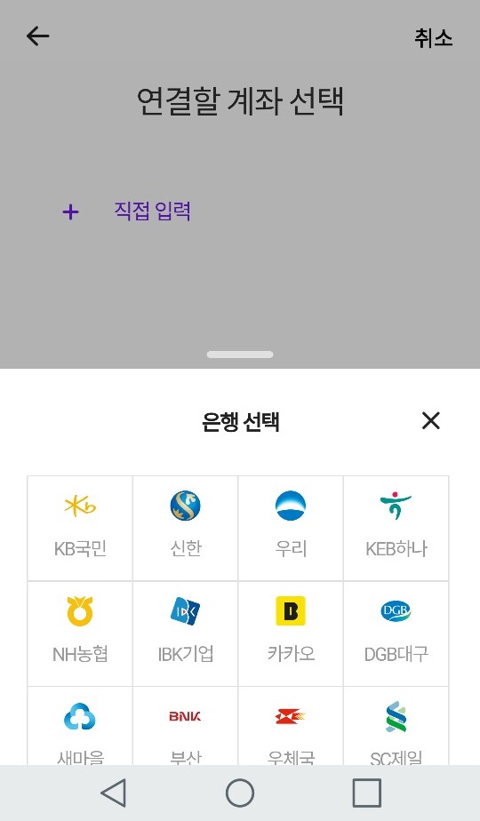 계좌 중 하나를 입력하시고 연결하세요