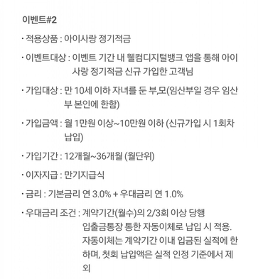 3. 1회차 적금액(첫거래 우대, 아이사랑)