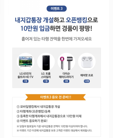 10만원 입금하면 경품이 우수수수