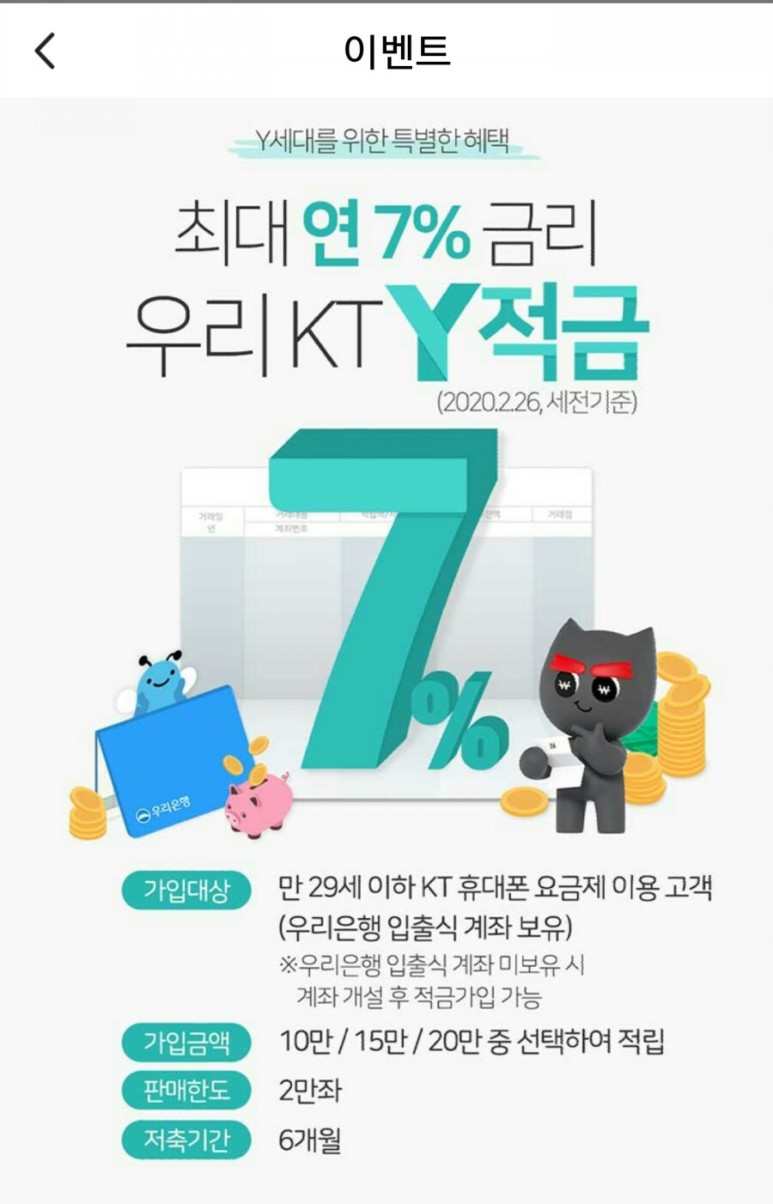 우리 KT Y 적금이 최대 연 7% 이자를 지급하는