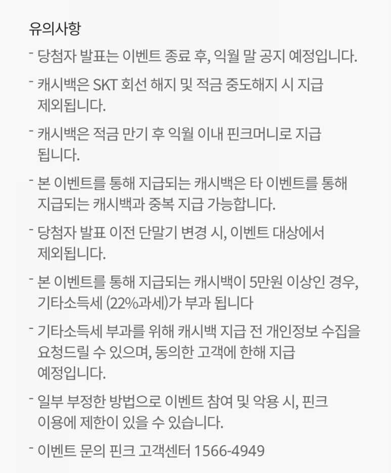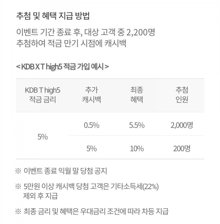 ※ 5만원 이상 캐시백 당첨 고객은 기타소득세