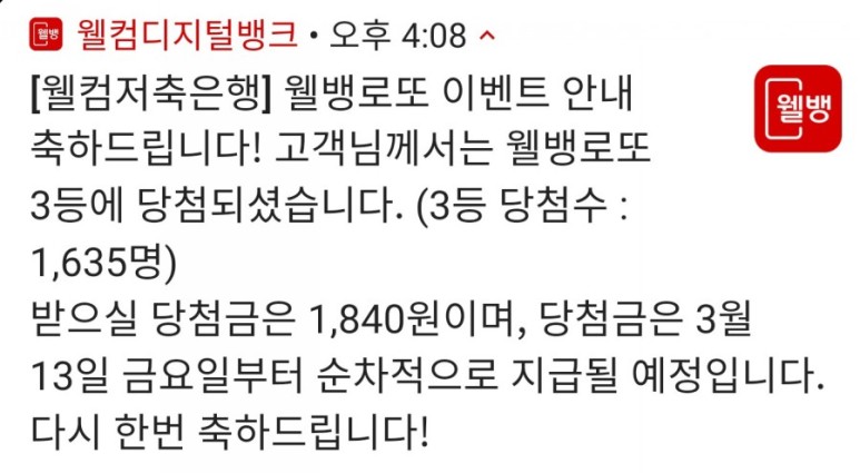 웰컴저축은행에서 웰뱅로또 당첨번호를