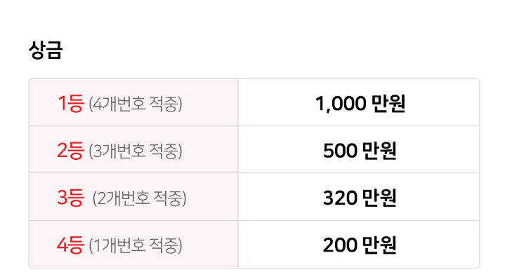 1등 당첨금은 100만원을 받을 수 있습니다.