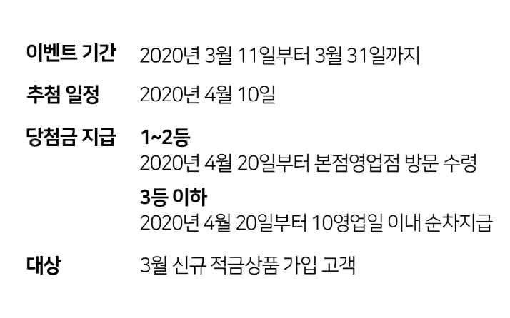 2. 이벤트 대상 적금 상품 가입(납입액 10만원 이상)