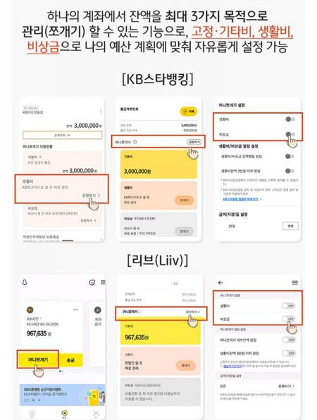 KB스타뱅킹 또는 리브 App에서 머니쪼개기