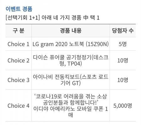 선택기회 1 + 1 아래 네가지 경품중 택 1