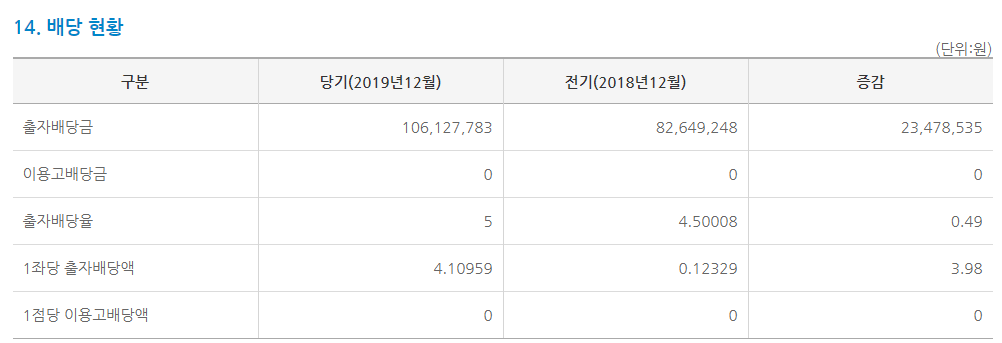 출자배당은 4.1% 배당하였습니다.