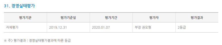 경영실태평가는 2등급을 받았습니다.