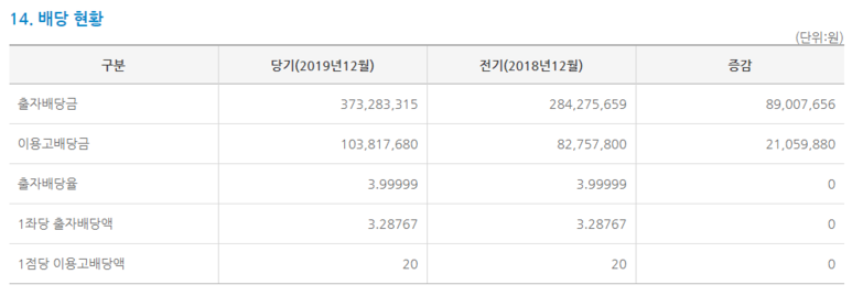 2019년 출자배당율은 4%를 배당하였습니다.