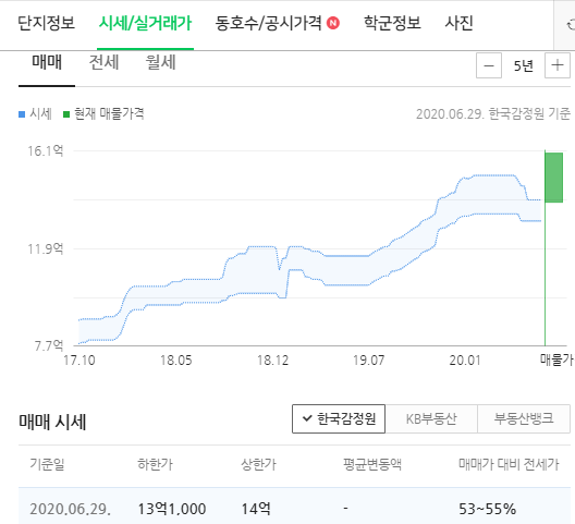 단지들의 현 시세를 확인해보시면