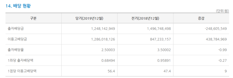 작년 배당은 2.5% 배당하였습니다.