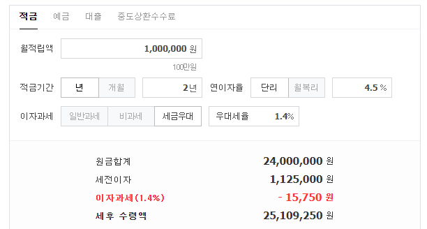 우대이율을 적용받아서 세금우대(1.4%)