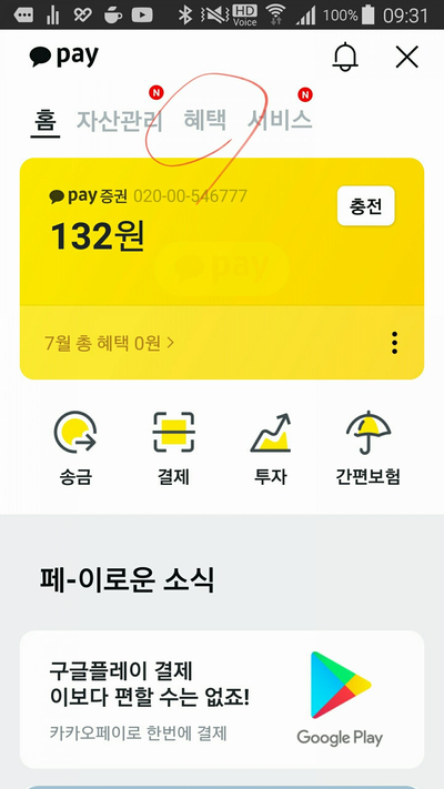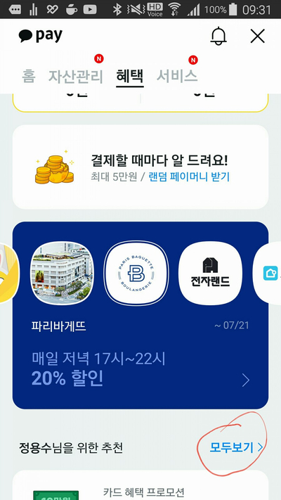 카카오페이에서 혜택 버튼을 누르다음