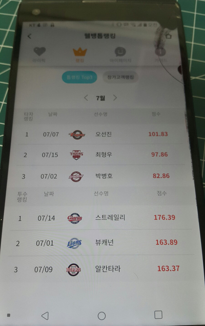 PICK한 선수가 그날 점수를 많이
