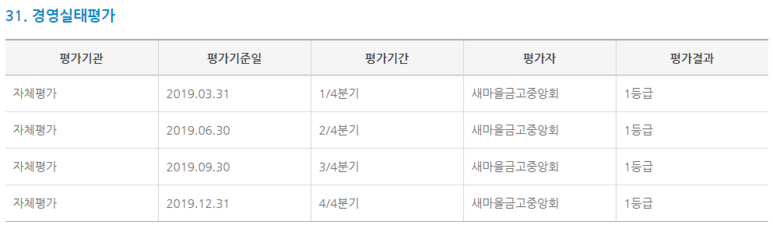 1~4분기 모두 1등급을 새마을금고