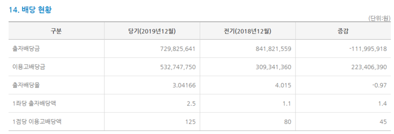 출자배당율을 3% 배당하였습니다.
