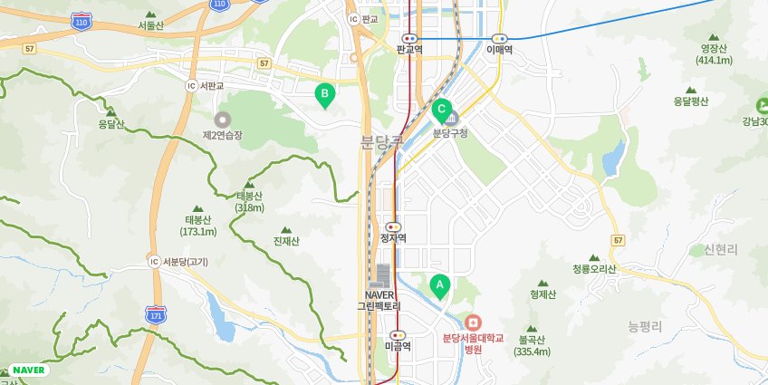 더불어서 분당 정자역을 중심으로