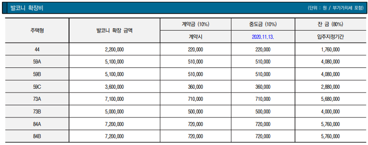 발코니 확장금액은 타 단지에 비해