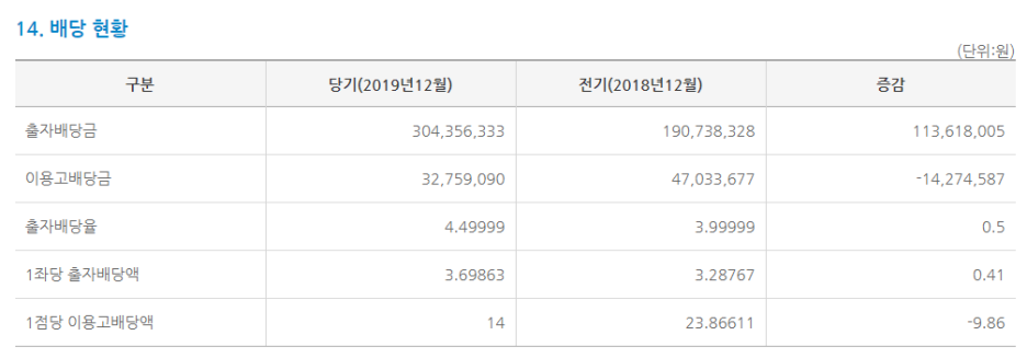 이용고배당도 지급한 것으로 확인되는데