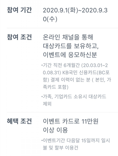 KB국민카드를 11만원 이상 사용하면