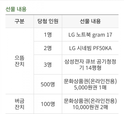 으뜸잔치 선물(문화상품권 제외)은 2020.