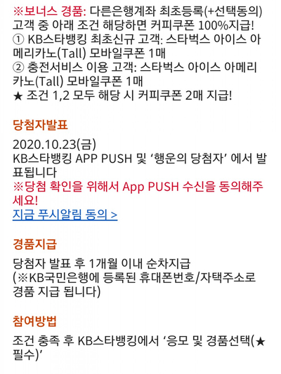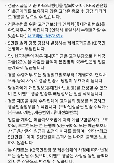 경품 지급 전까지 KB스타뱅킹을 탈퇴