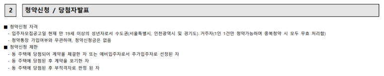 및 경기도) 거주자 1인 1건만 청약 가능