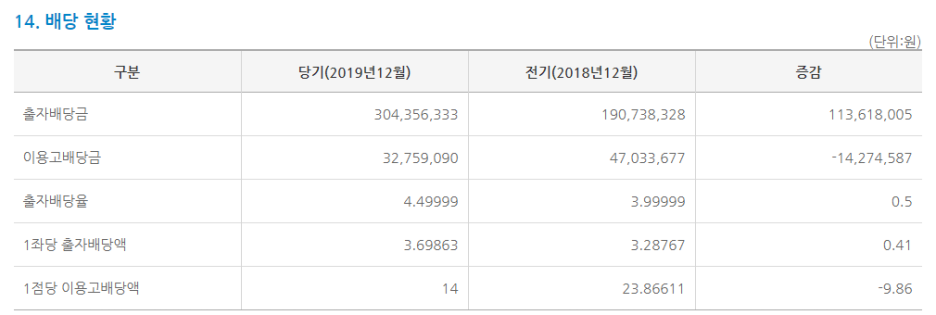 출자배당은 4.5% 배당하였습니다.