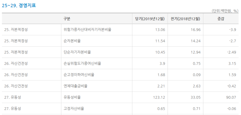 경영지표를 살펴보면 위험가중자산대비