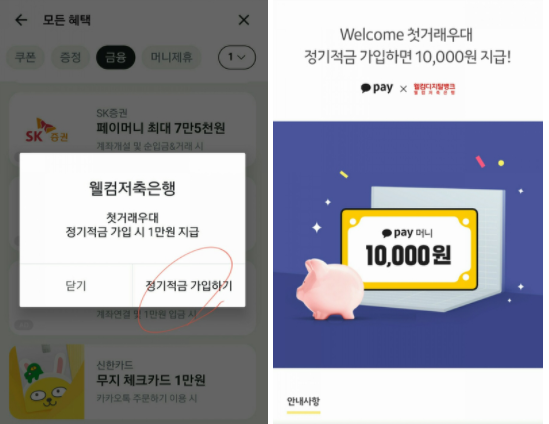 첫번째 카카오페이를 통해서 웰컴저축은행