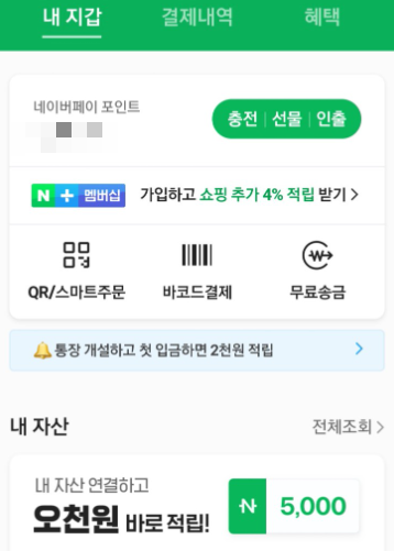 네이버페이 계좌연결 및 최소금액