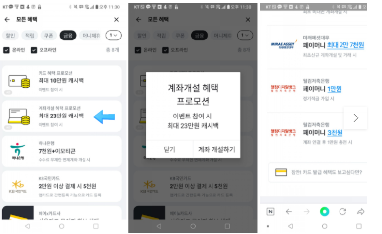 카카오페이 모든 혜택 -> 금융탭을