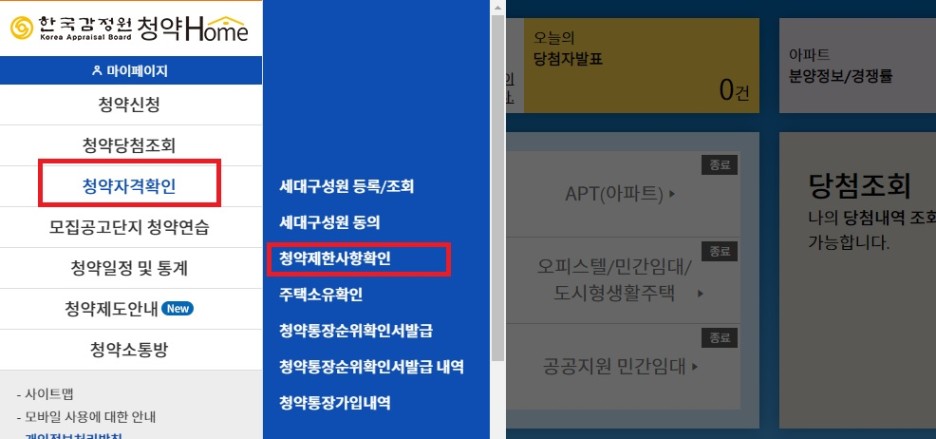 재당첨 제한 여부를 확인할 수 있는 방법은