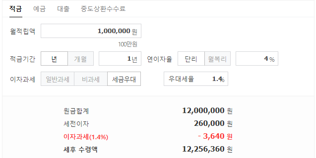 4%금리로 적용받고 세금우대(1.4%)