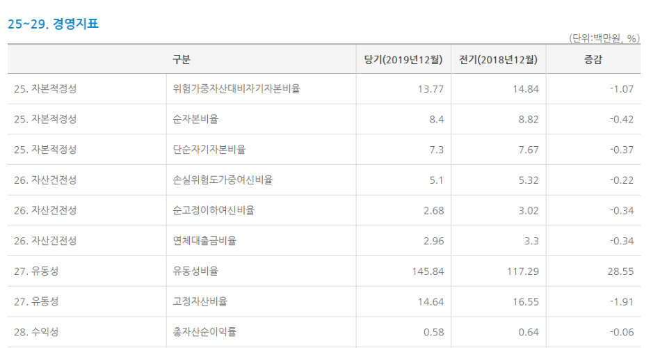 경영지표를 살펴보면 위험가중자산