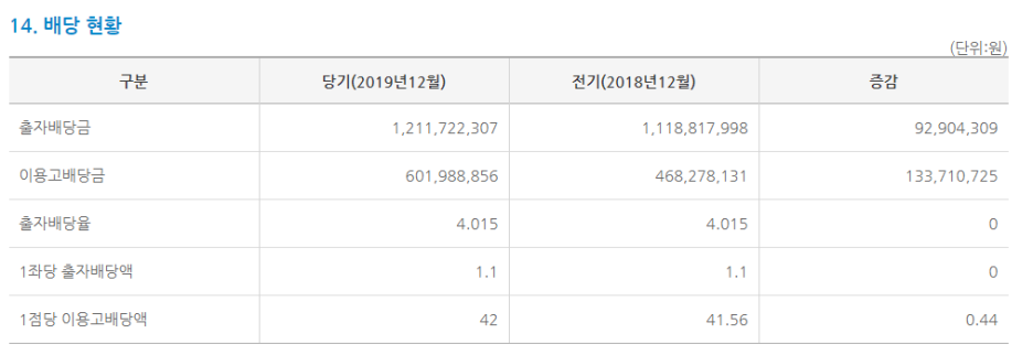 무엇보다 출자금 배당이 4%나 되니