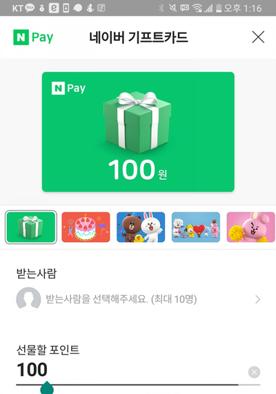 네이버페이포인트를 첫 선물하면