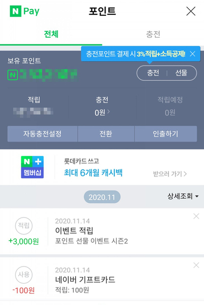 포인트 선물하기 시즌1 이벤트를 참여했던