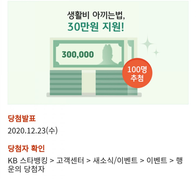 현금 30만원 지급 (100명 추첨, 제세공과금