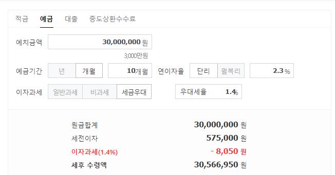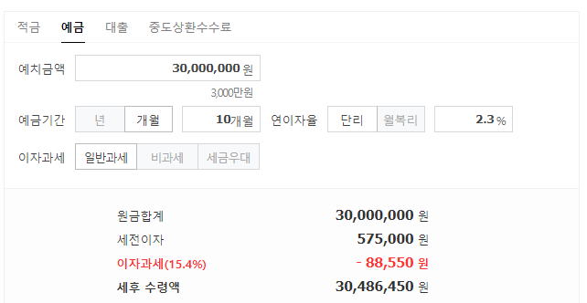 있는지 예금계산기로 한번 계산을