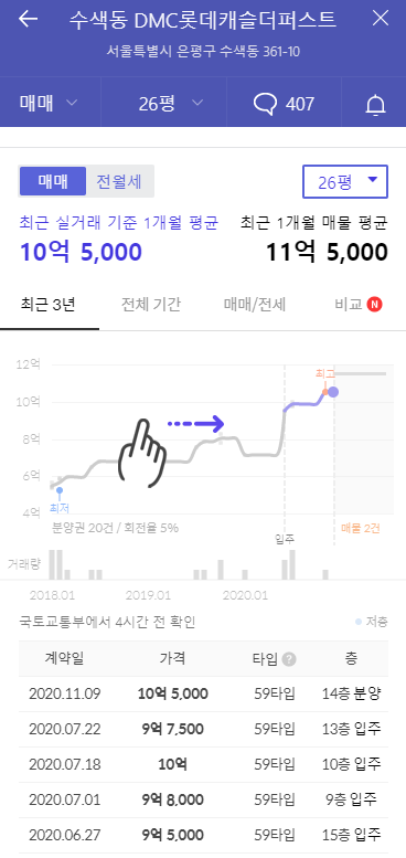 아파트의 59타입의 실거래가와