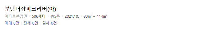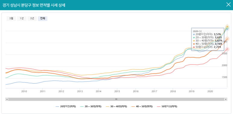 분당구의 면적별 시세를 확인해보면