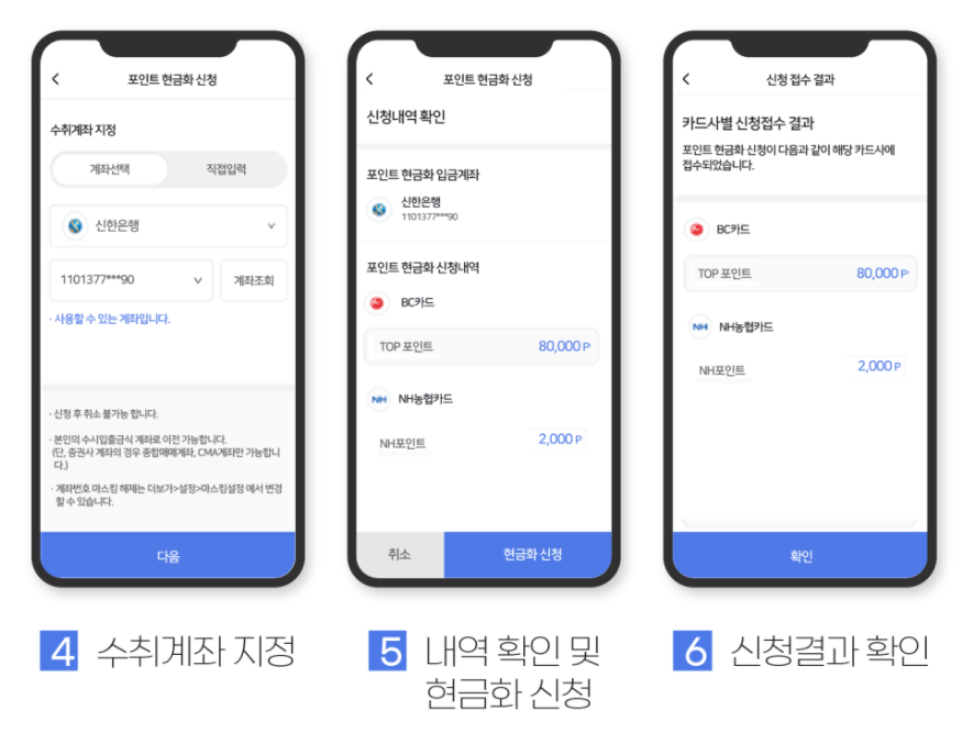 카드포인트 계좌 입금 신청 완료 시