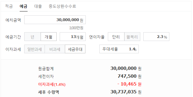 인터넷, 스마트뱅킹 2.3% (0.1% 우대)
