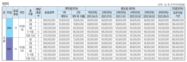 3단지 5군 84A, 84B의 경우