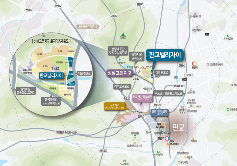따라서 판교 제2테크노밸리와 2km 이내에