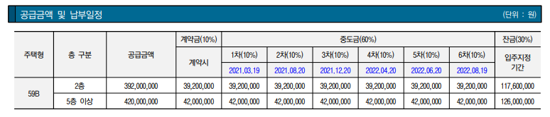 59m2 타입 분양가는