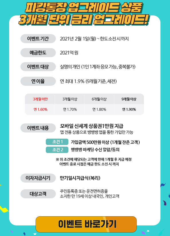 2021년 2월 1일 가입 가능한 특판정기예금 특판정기적금 및 고금리 이벤트 상품을 공유합니다